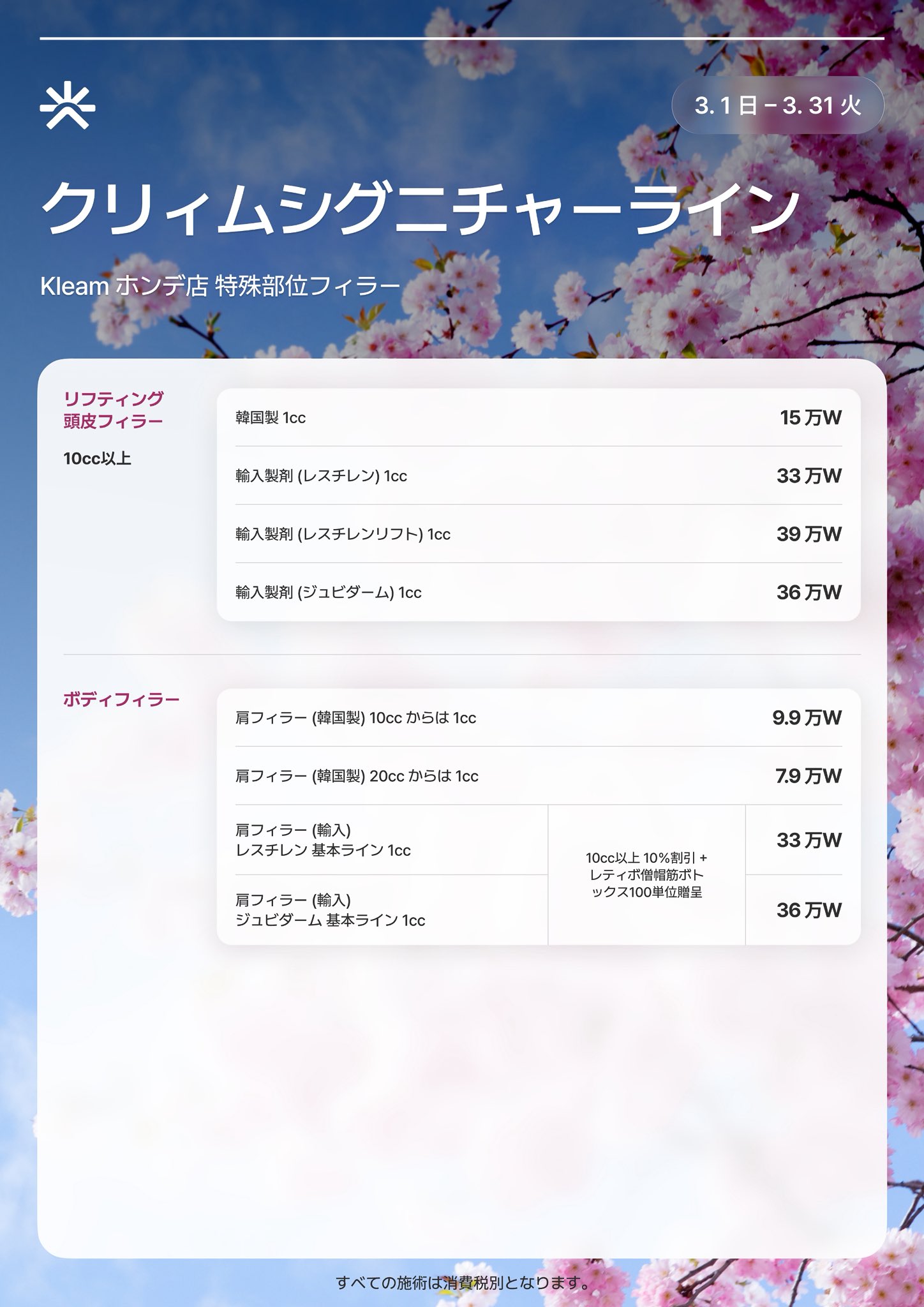 追加の消費税10%は含まれていません。